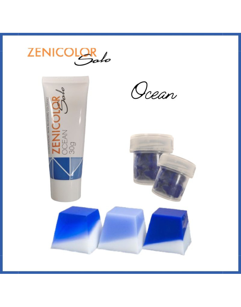 Пастоподібний пігмент Океан (Ocean), насиченого синього кольору, виготовлений словацькою компанією Zeni для фарбування мила з мильної основи.