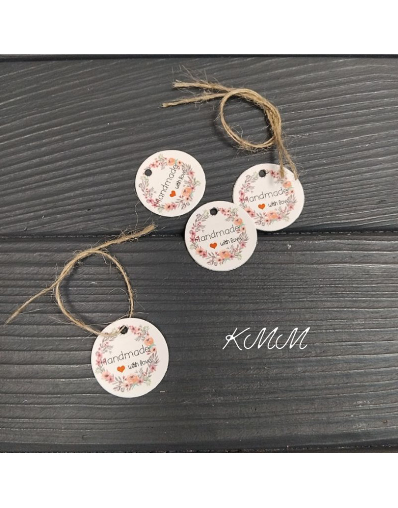 Теги: Бірка, Листівка, Бірка Handmade with love 30мм з мотузкою