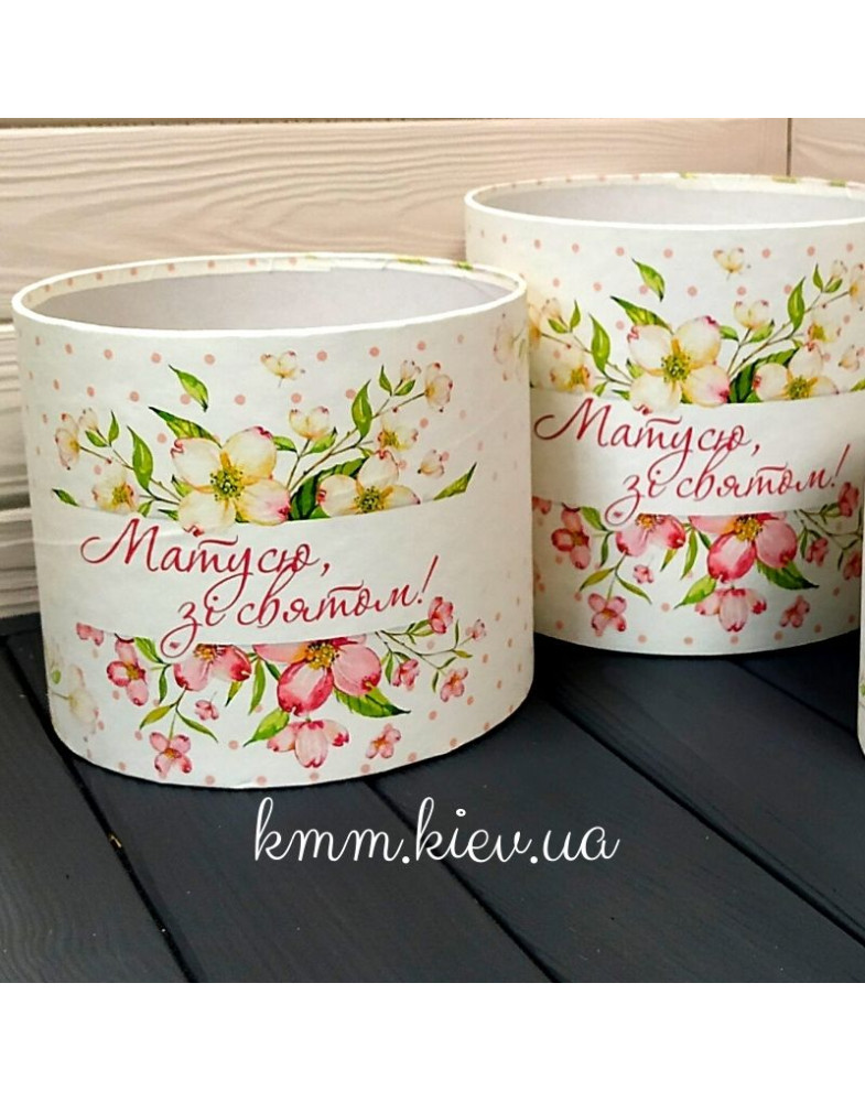 Теги: Коробка, кругла, капелюшна, Матусю, зі святом, 120ммх100мм
