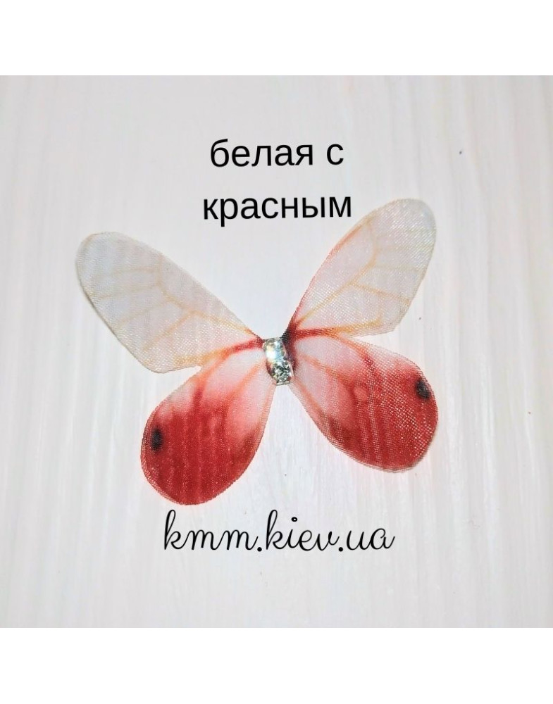 Завдяки тому, що метелик зроблений з двох шарів прозорої органзи, крила переливаються і виглядають об'ємними.