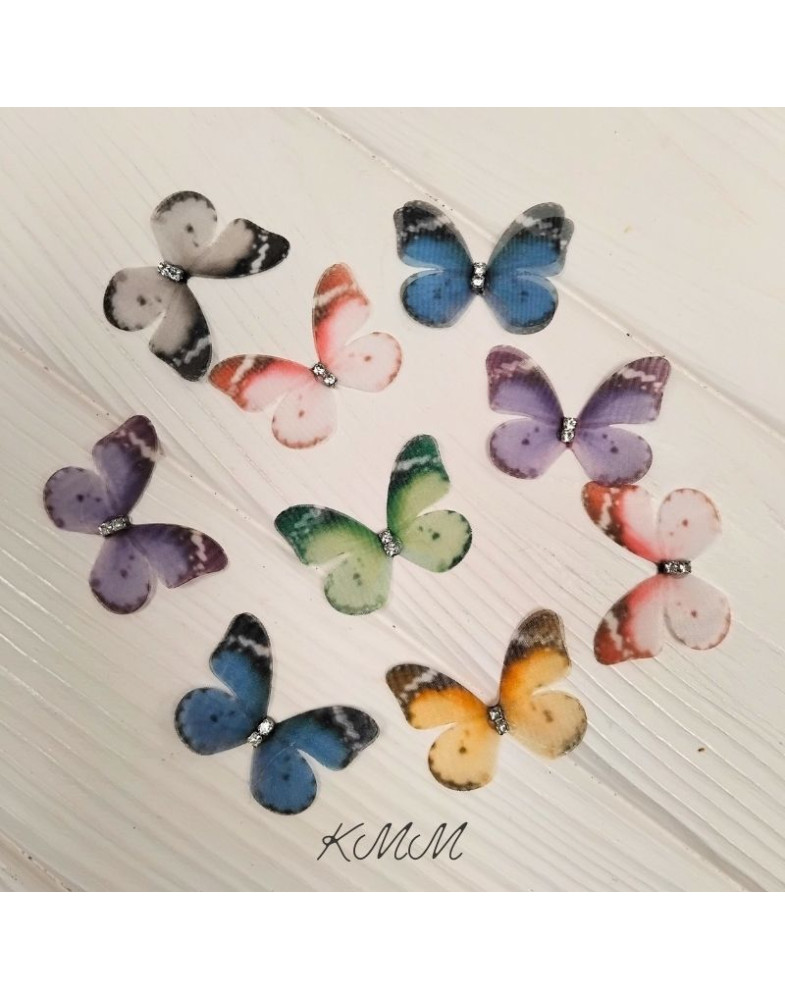 Метелики з двошарової органзи зі стразами 3 шт. - колір асорті