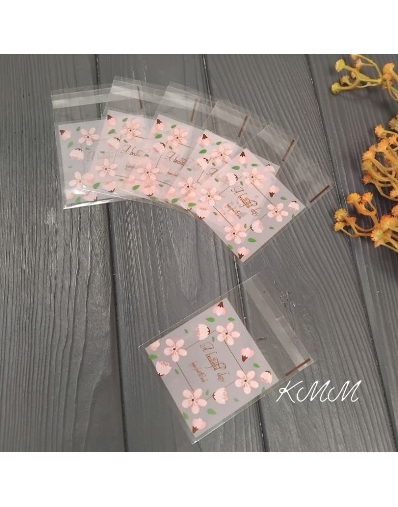 Пакет прозорий "A beautiful day begins from the smile" з клійкою стрічкою 70х70мм - 1шт.