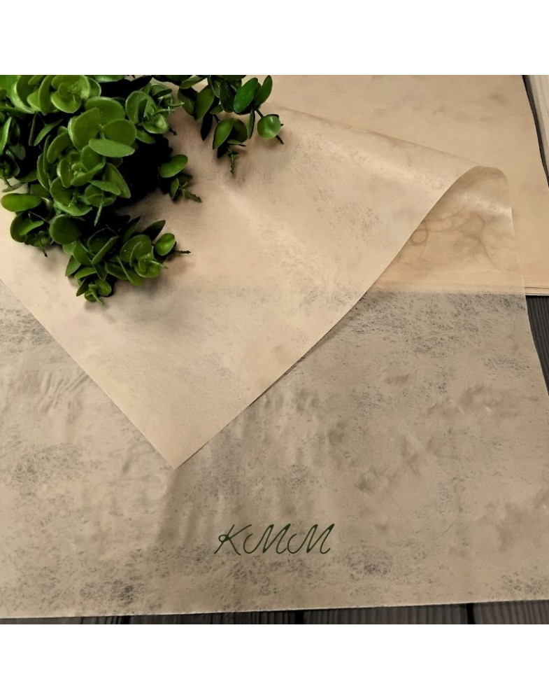 М’який, легкий і приємний на дотик, він поєднує в собі оксамитову текстуру та витончений напівпрозорий мармуровий візерунок. Такий папір легко драпірується, не рветься під час роботи та чудово тримає форму.