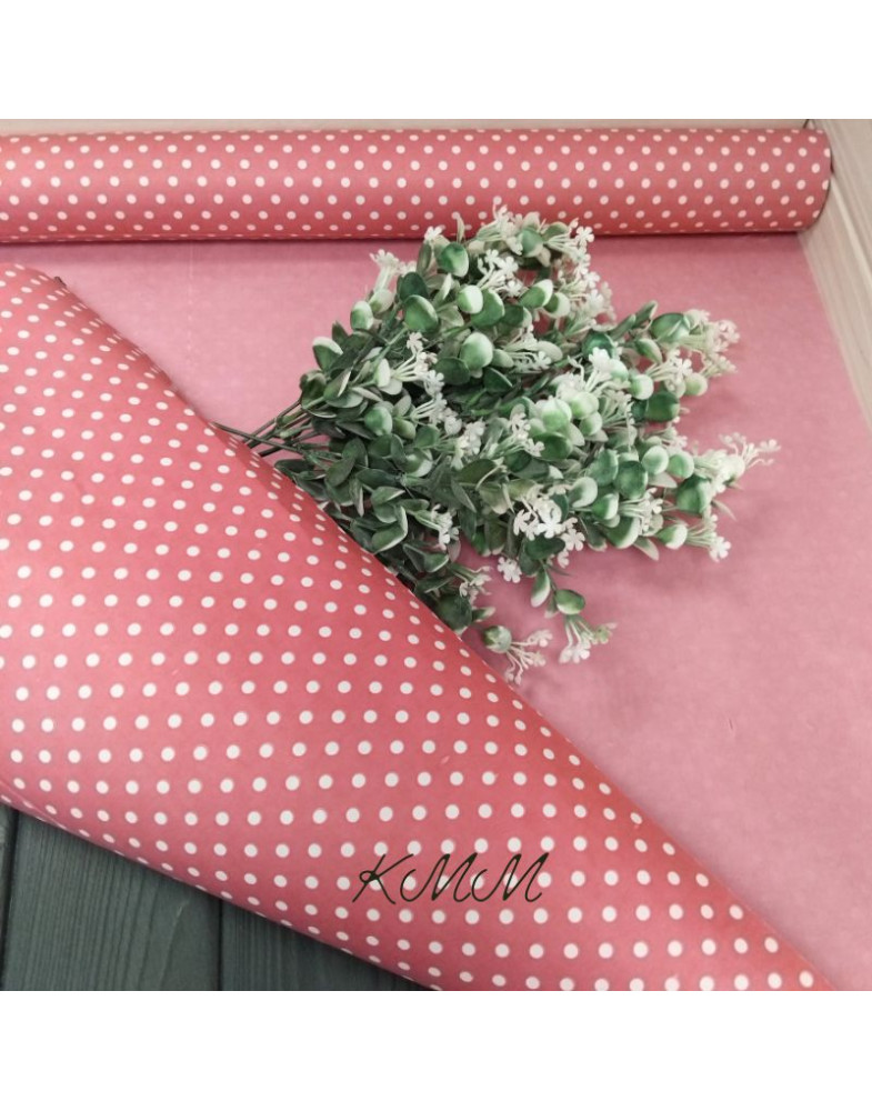Папір пакувальний Горох білий на рожевому ширина 70см - 1м