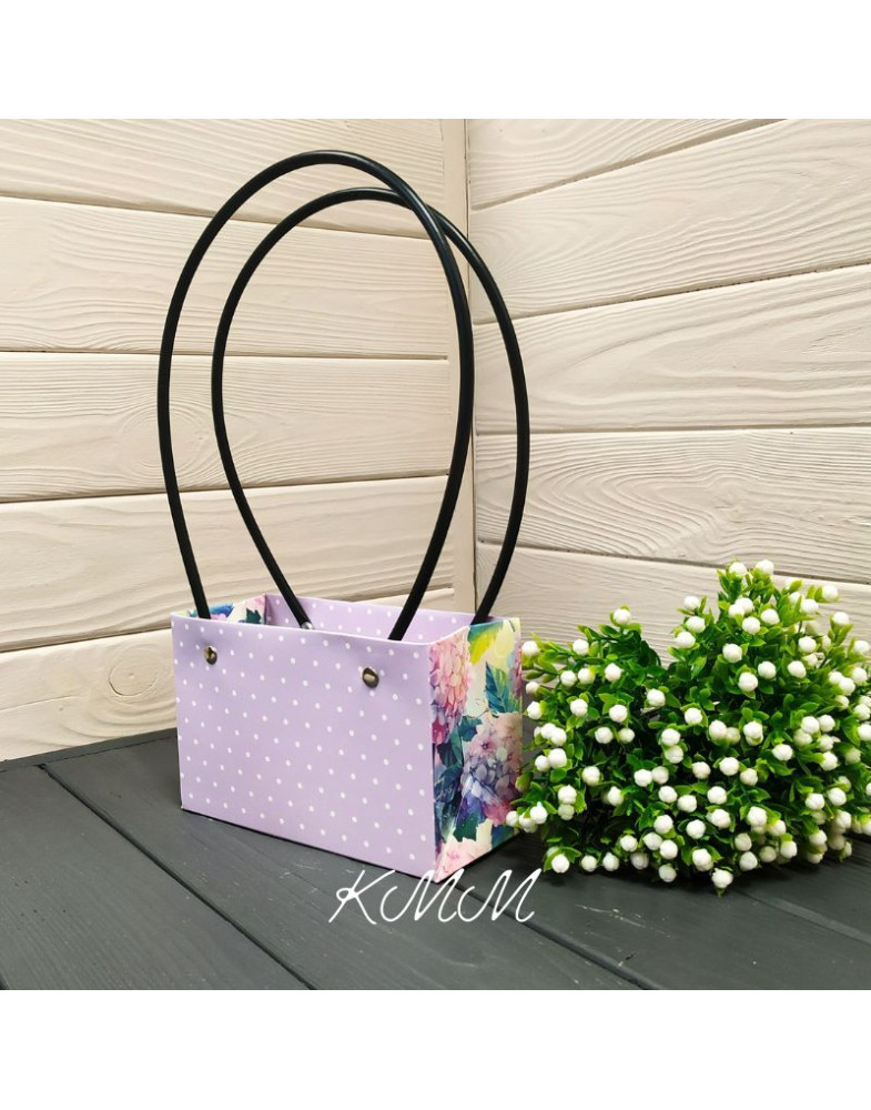 Виготовлена із щільного картону. З двома круглими ручками.
