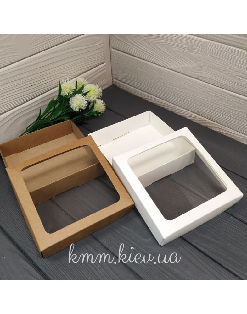 Коробка з квадратним вікном 150х150х35 колір в асортименті - Крафт