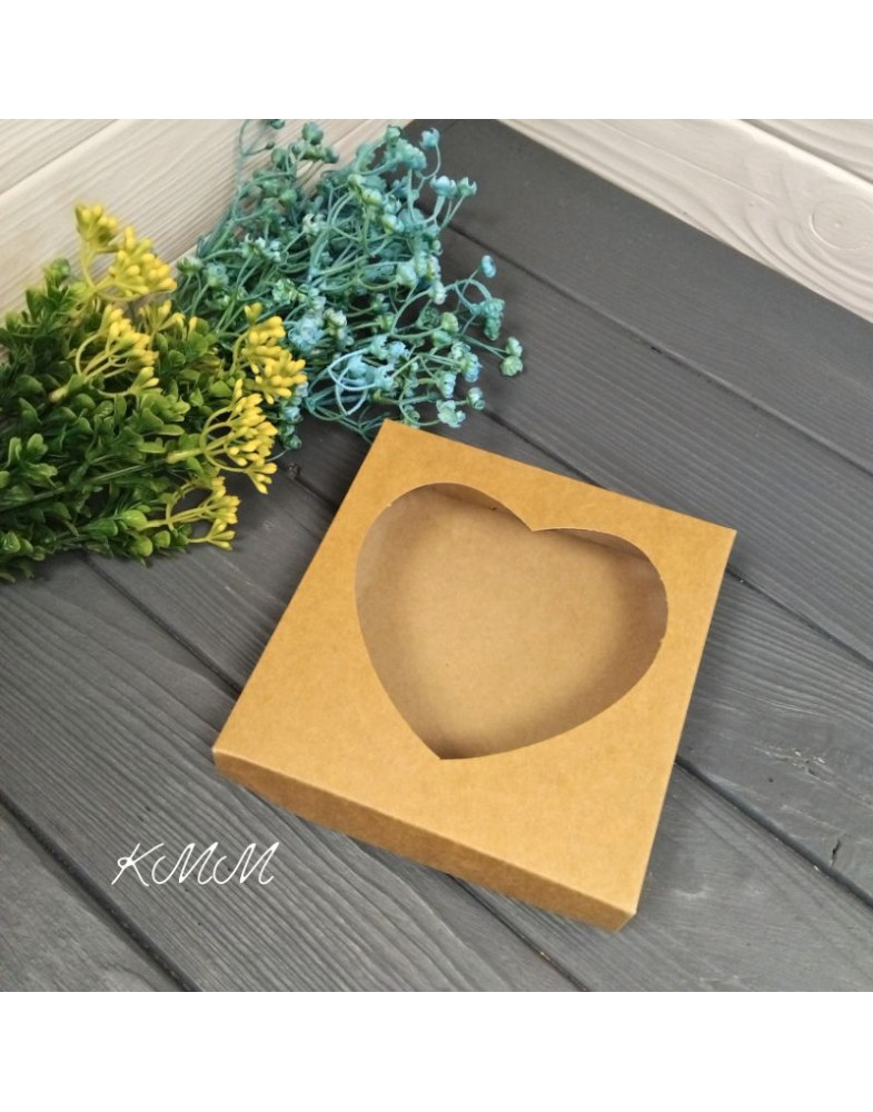 Теги: Коробка з вікном, Серце, 150х150х35, Крафт