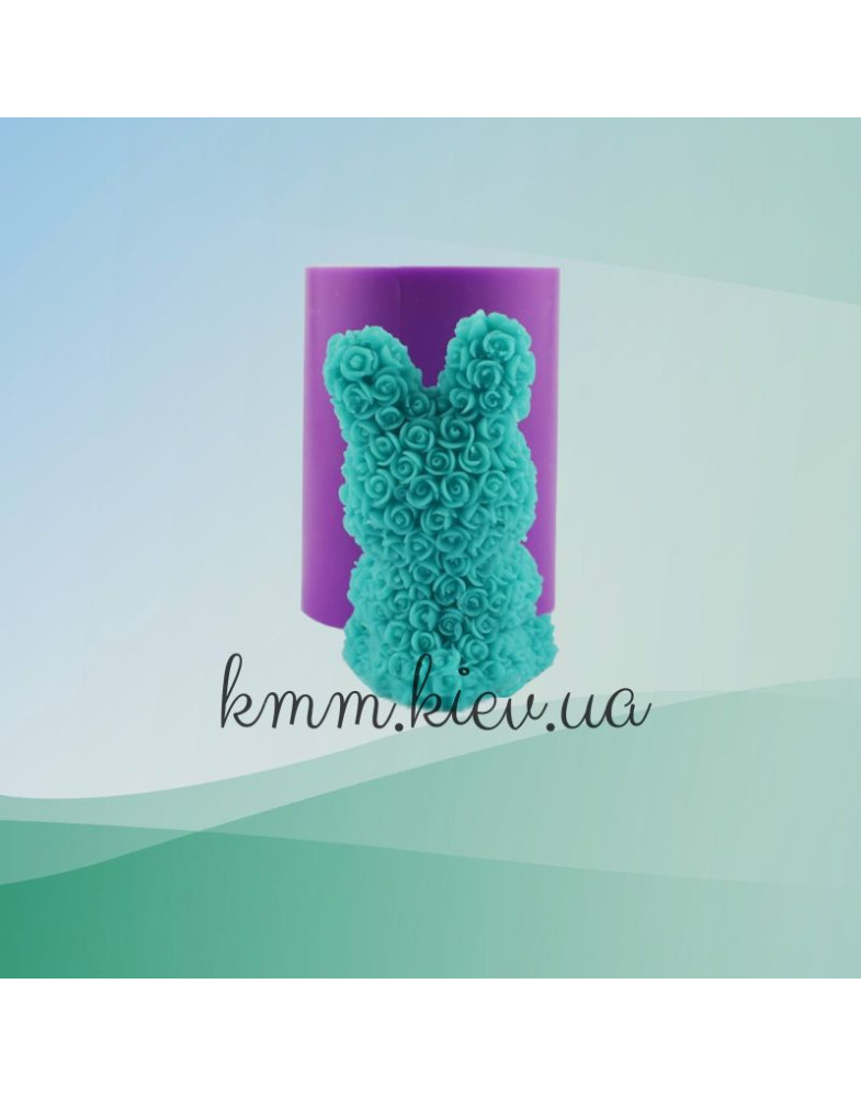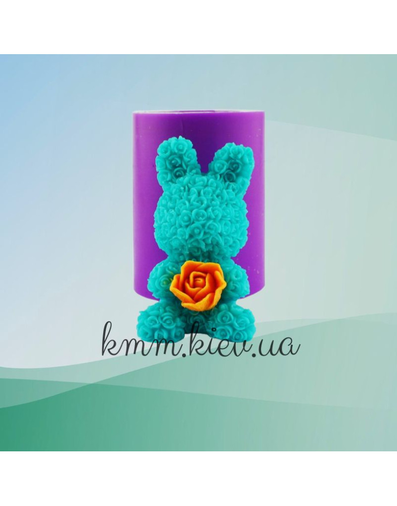 Силіконова форма люкс 3D Зайчик у трояндочках з квіткою