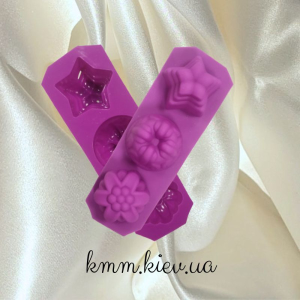 Силіконова форма планшет Кекс, квітка, зірка ( планшет 3шт)