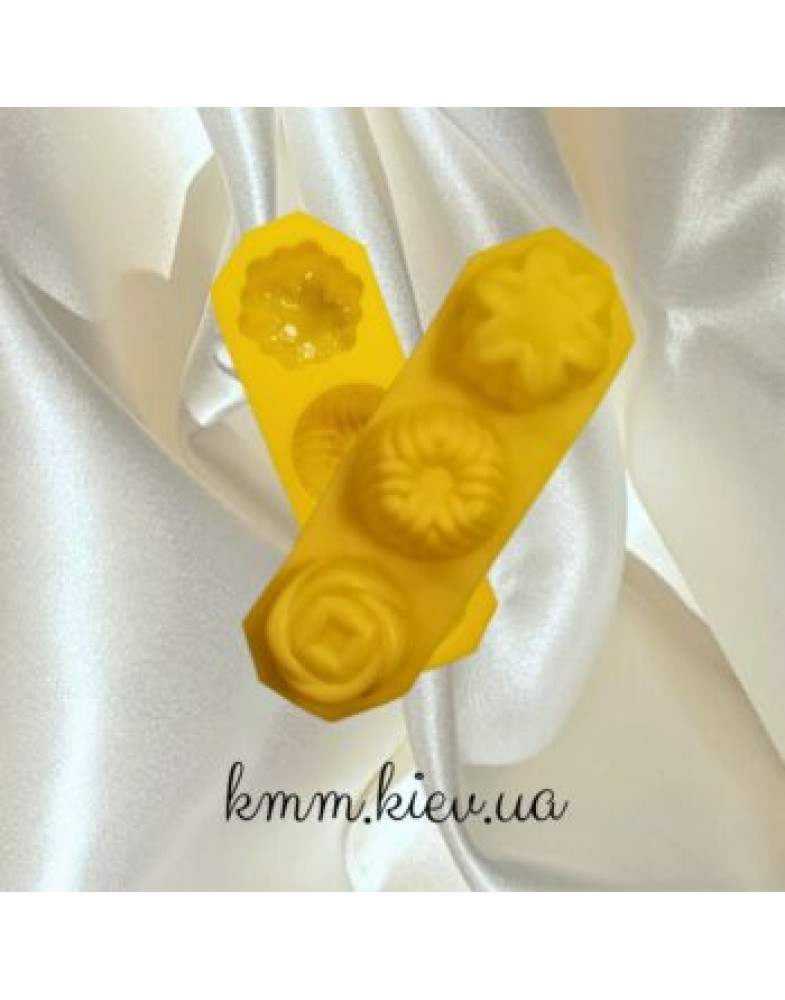 Силіконова форма планшет Кекс та 2 квітки (планшет 3шт)