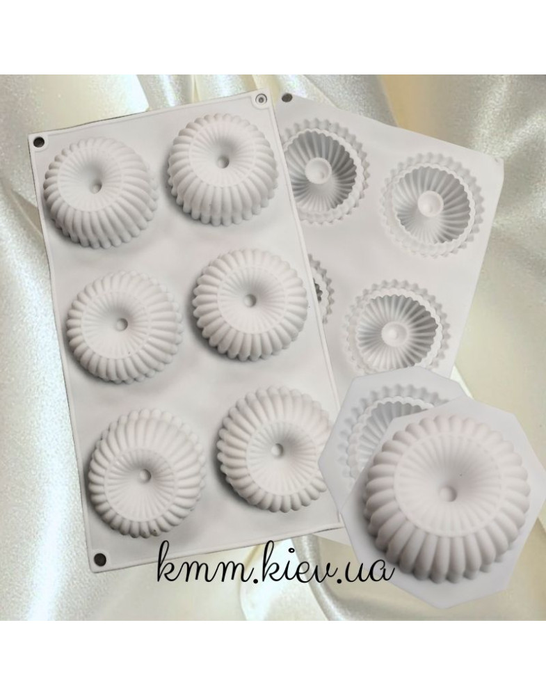 Силіконова форма планшет Пончик ребристий (кекс) (1 форма, планшет 6 шт.) - 1 шт.