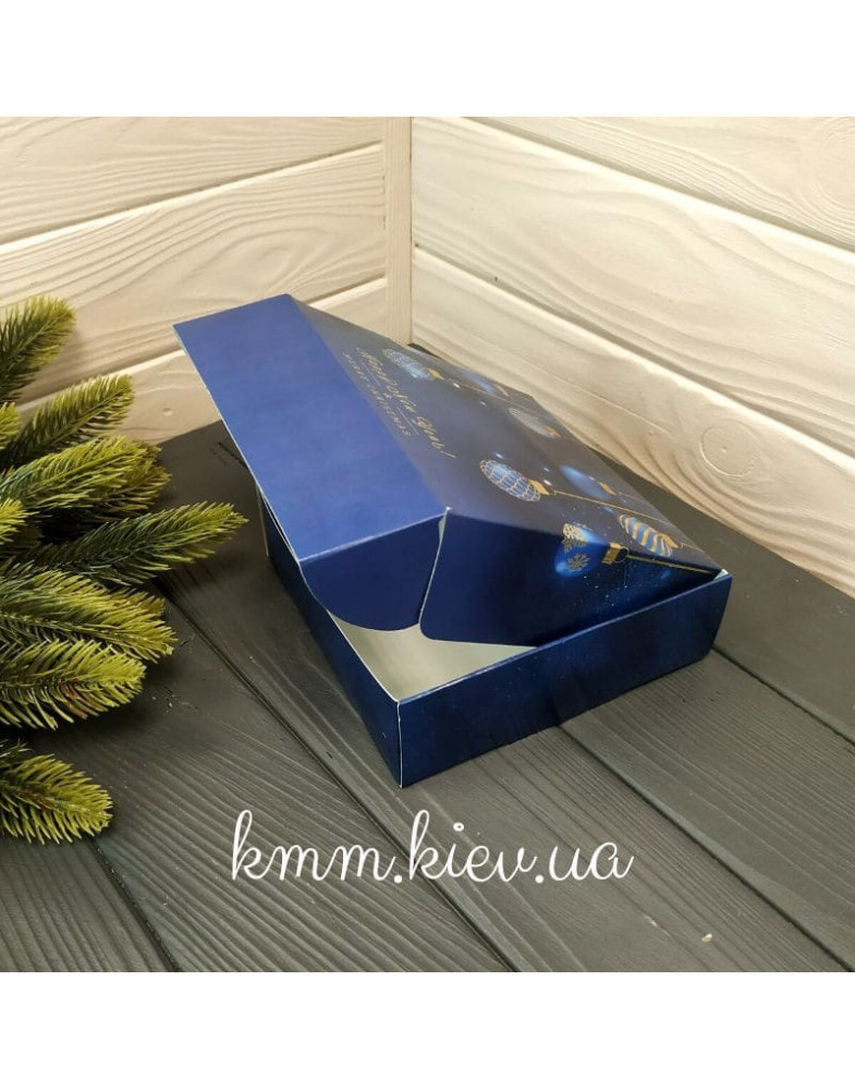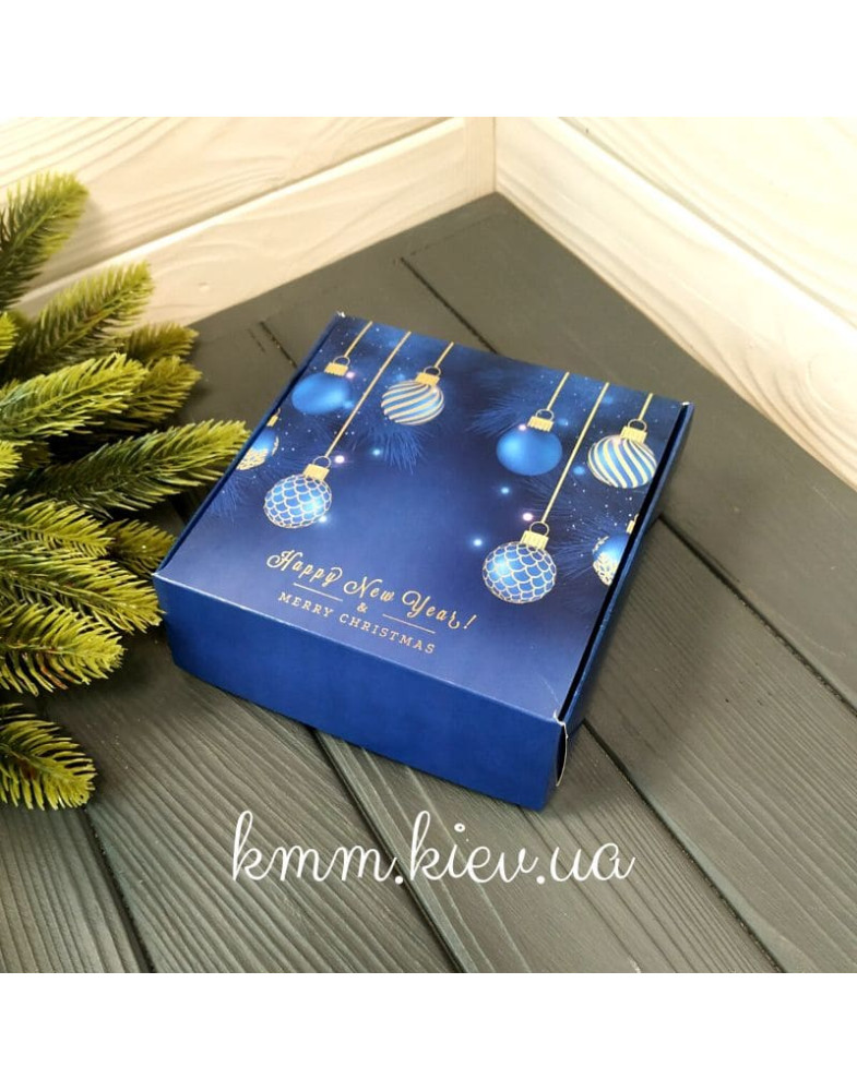 Коробка Happy New Year з кулями та золотим тисненням 150х150х50мм (Щасливого Нового року)