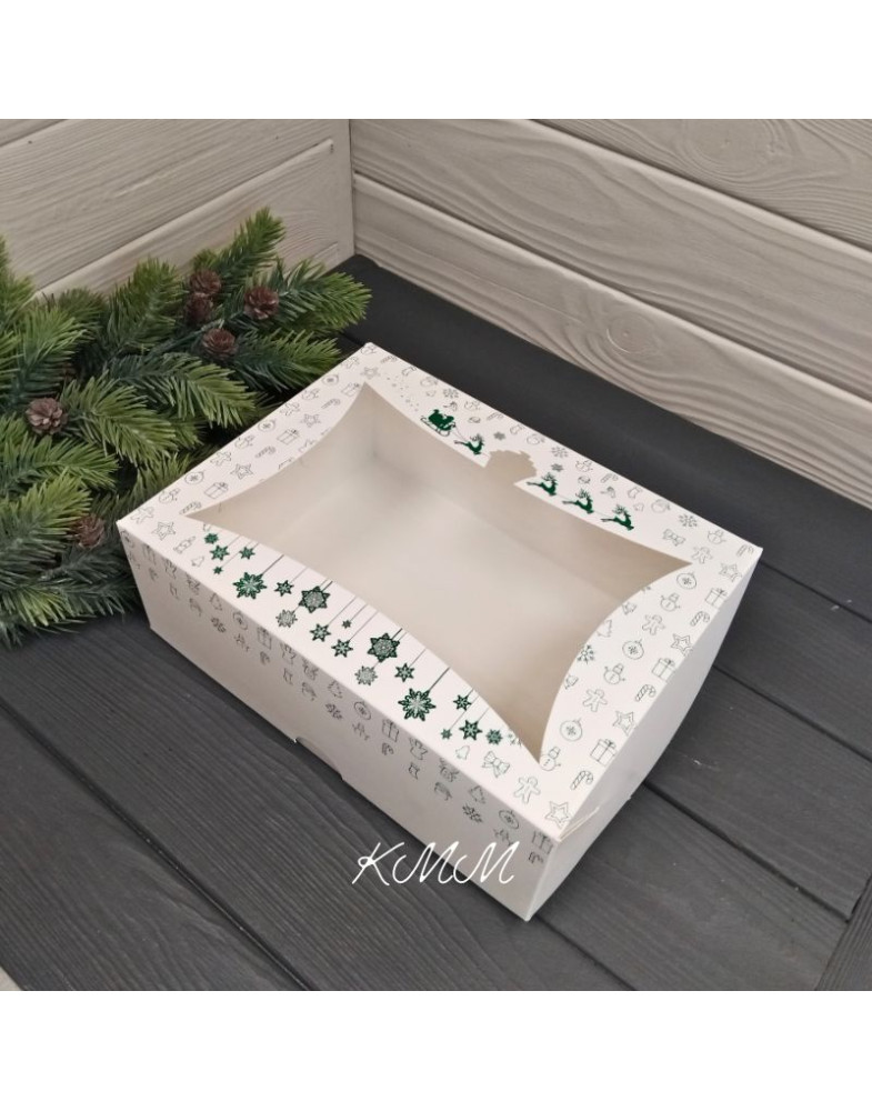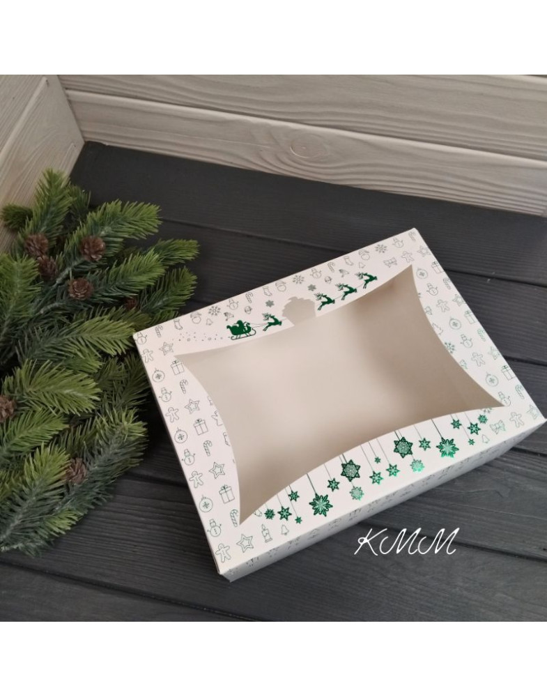 Коробка Новорічна із зеленим тисненням 240х180х90мм