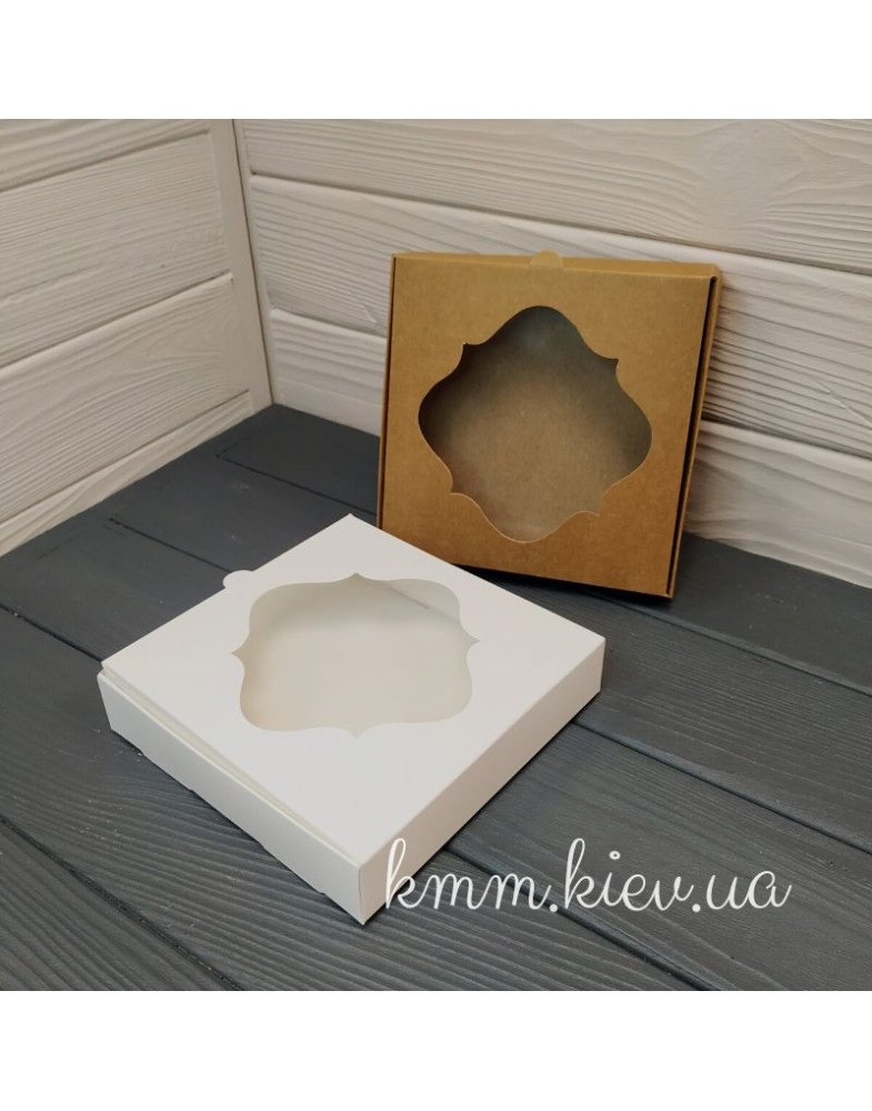 Коробка з фігурним вікном 2 (біла, крафт) 150х150х30мм - Крафт