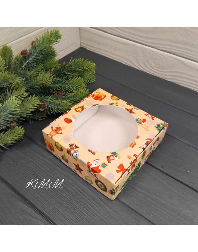 Коробка з круглим вікном Новорічна 150х150х50мм