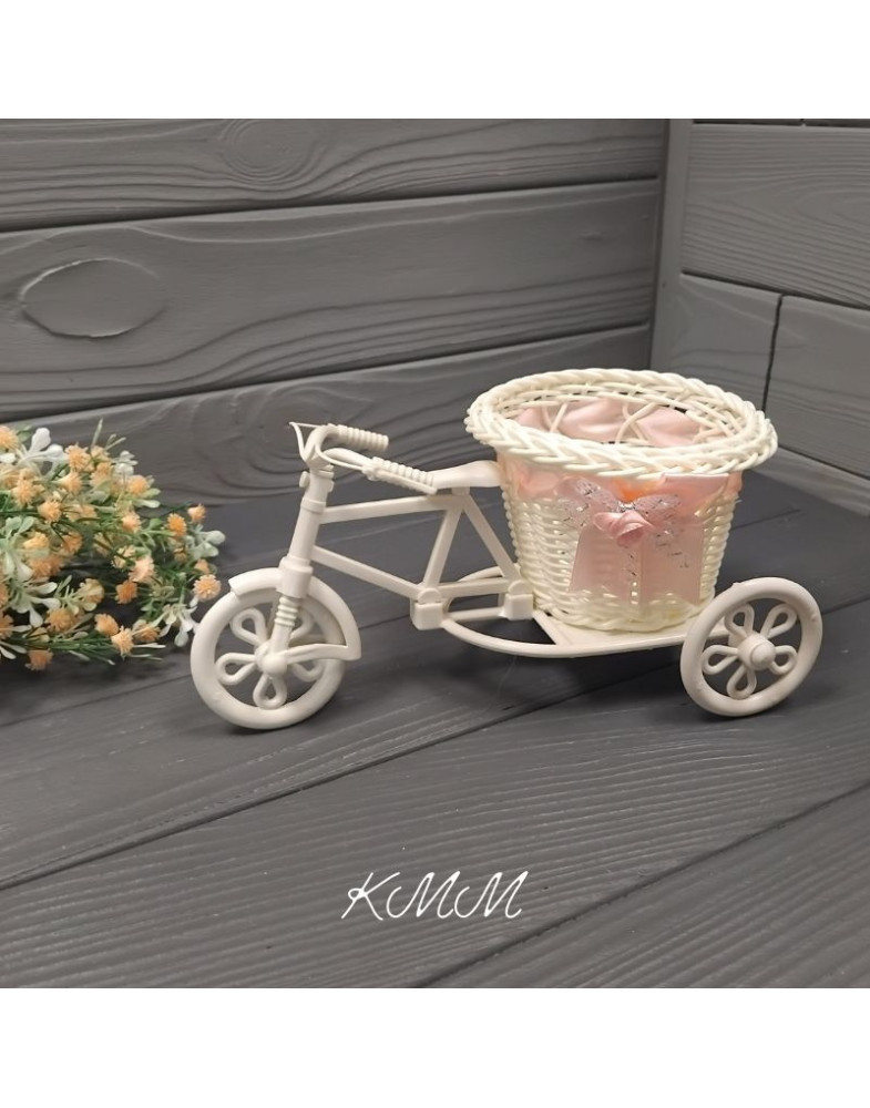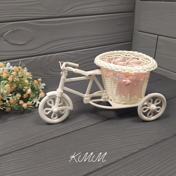 Кашпо Велосипед з рожевою стрічкою може використовуватися для домашнього декору.
