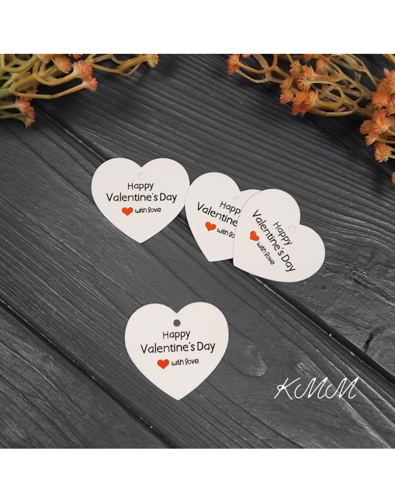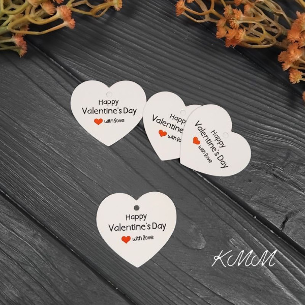 Бірка Happy Valentine`s Day with love Біла (День Св. Валентина) 50х40мм (5шт)
