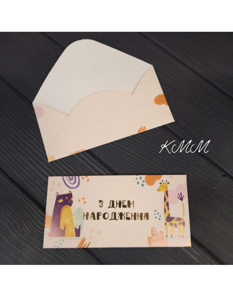 Конверт для грошей З Днем народження! (Звірята) 17 см х 8,5 см -1шт.