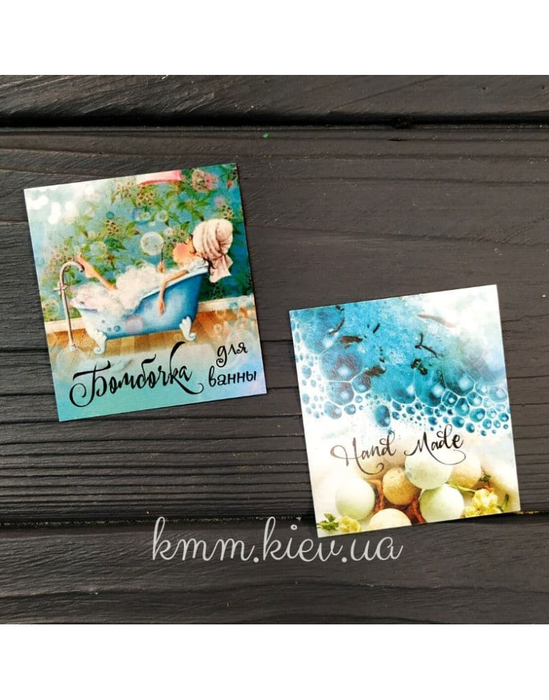 Теги: бомбочка для ванни, листівка бірка, блакитна, 50х45мм, 5шт
