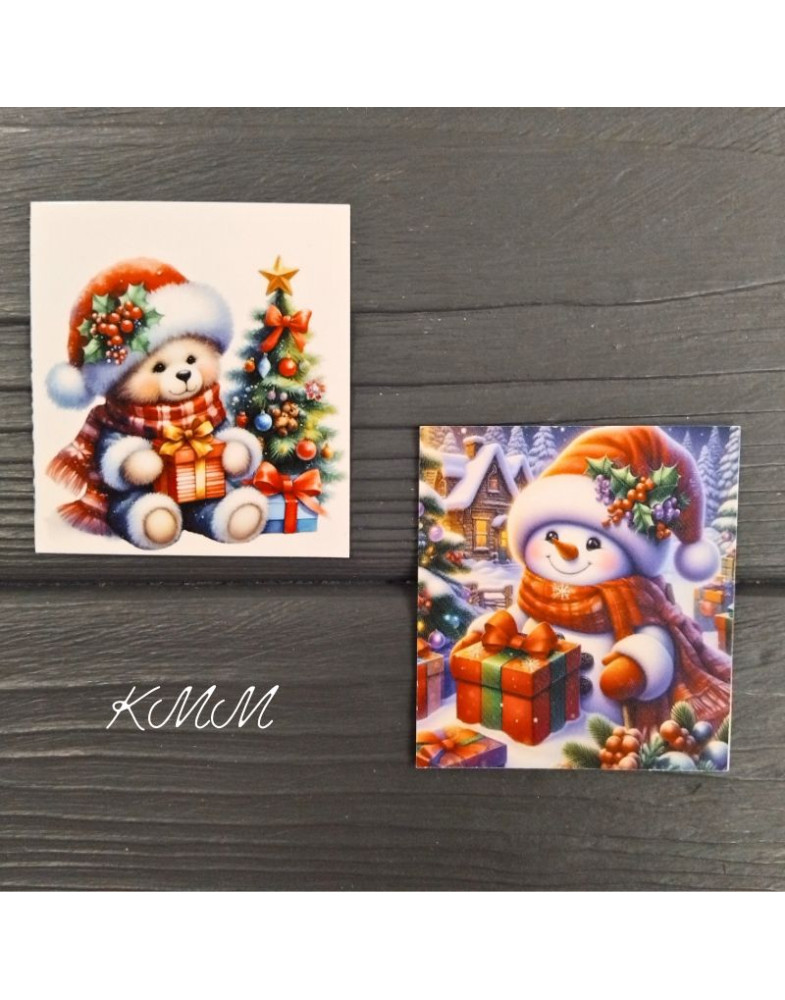 Листівка бірка Ведмедик та сніговик 50х45мм (5шт)