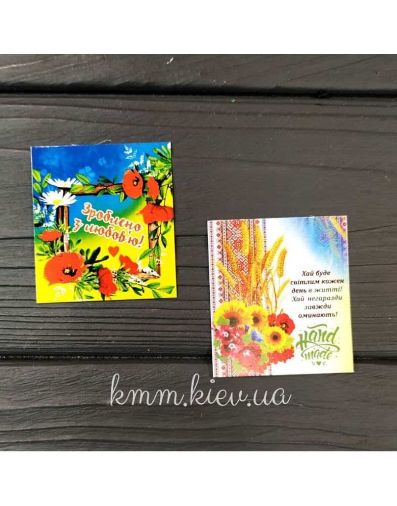 Теги: Листівка, бірка, Зроблено з любов'ю, Маки, 50х45мм, 5шт