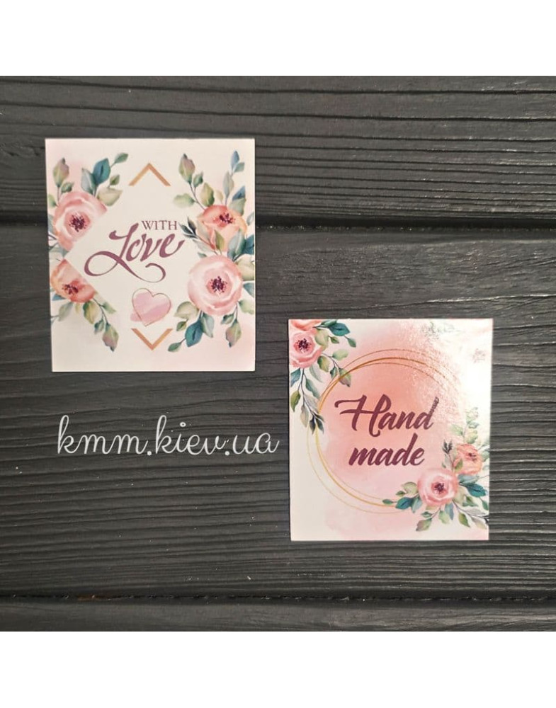 Теги: Листівка, бирка, Hand made, love, Ручна робота, ручна робота з любов'ю, 50х45мм, 5шт