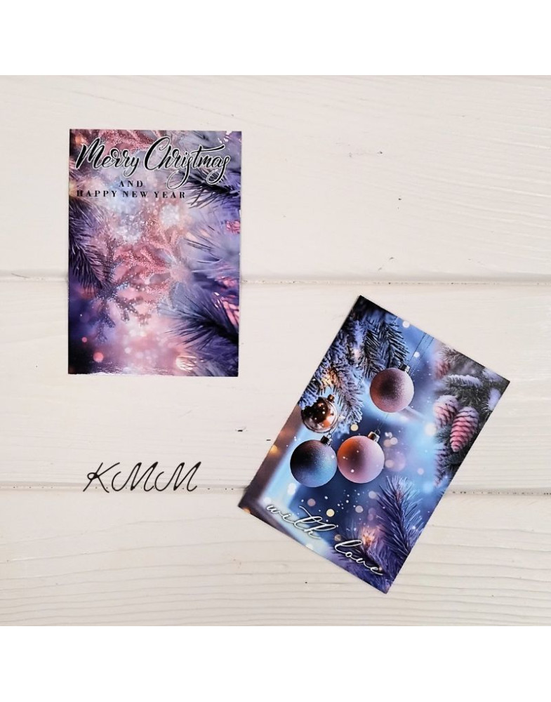 Листівка Merry Christmas and Happy New Year (бузкова, кульки)100х70мм - 1шт