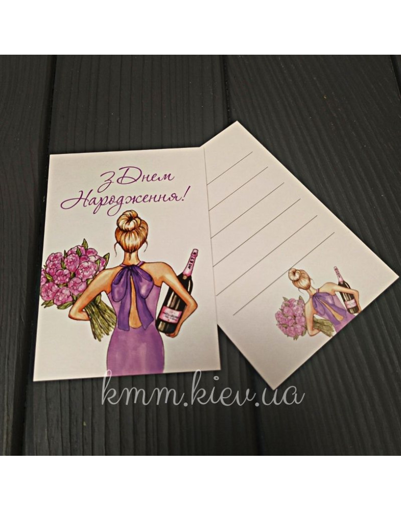 Листівка З Днем Народження! (Дівчина) 100ммх70мм