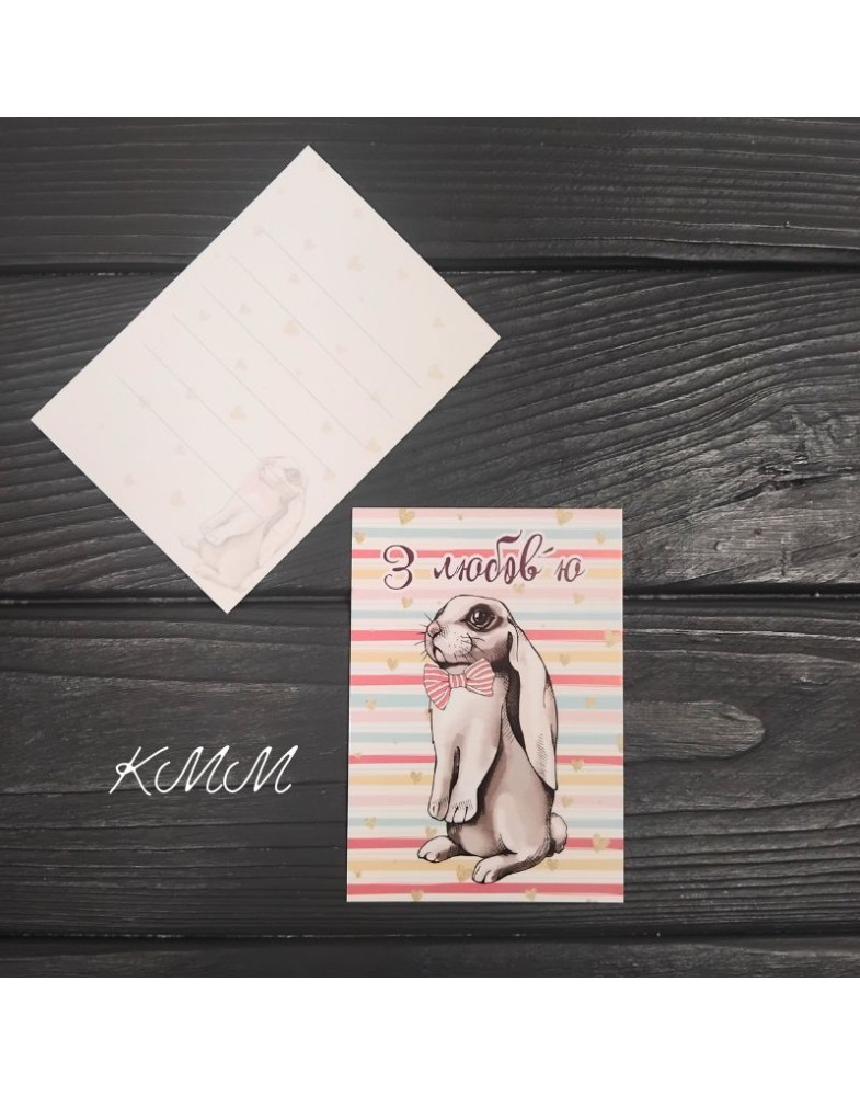 Листівка З любов'ю (зайчик) 100ммх70мм - 1шт