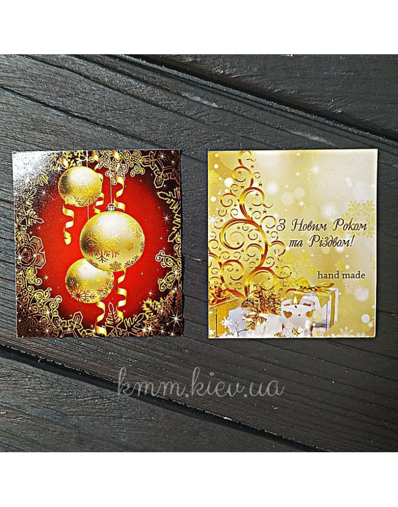 Теги: Листівка з Новим Роком, Різдвом, Золоті кулі, 50х45мм, 5шт