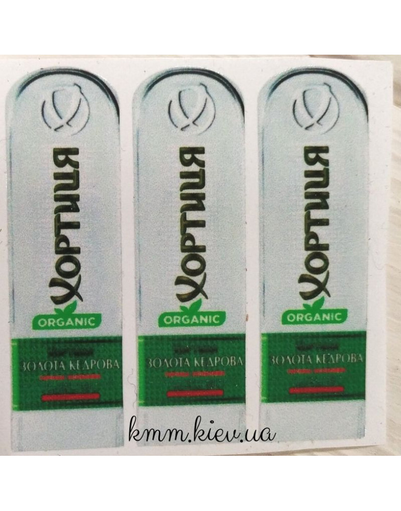 Наклейка етикетка Хортиця Золота Кедрова (Хортиця) 65х20мм.