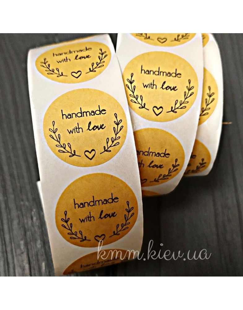 Наліпка Handmade with love 3 крафт 10шт