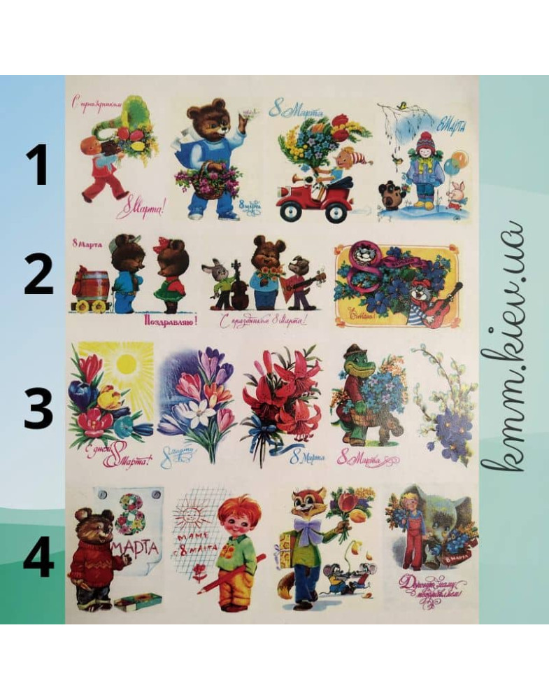 Теги: Картинка, водорозчинний папір, 8 Березня, Герої мультфільмів, 1 смуга