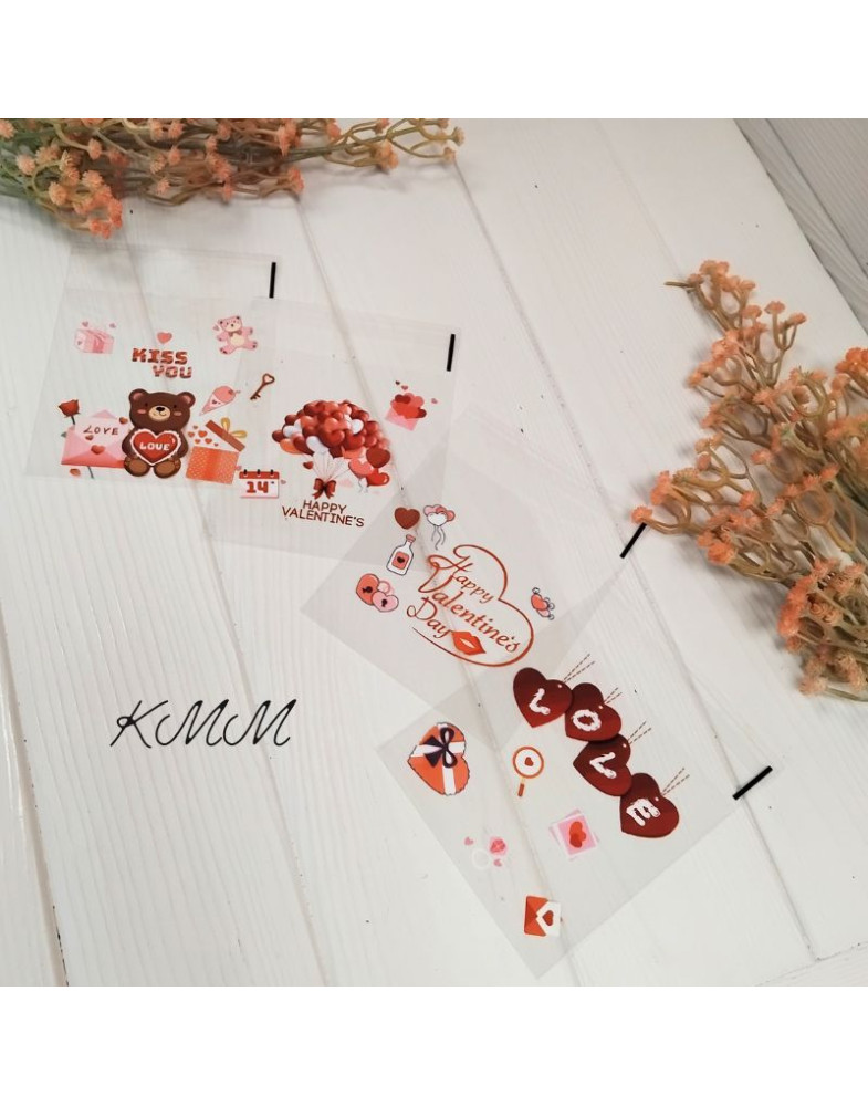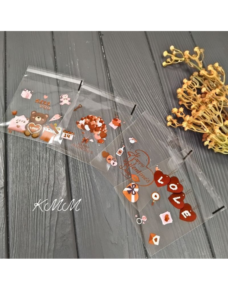 Пакет прозорий "День Святого Валентина" з клейкою стрічкою 100х100мм - 4шт.