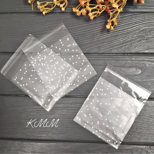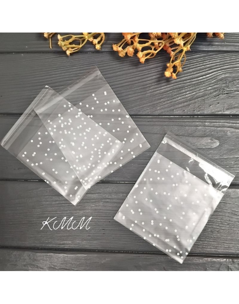 Пакет прозорий "Горошок матовий" з клійкою стрічкою 100х100мм - 1шт.