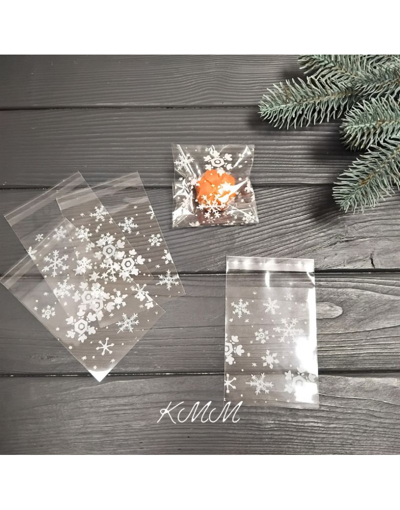 Теги: пакет прозорий, Пакет прозорий "Сніжинки" з клійкою стрічкою 80х100мм - 1шт.