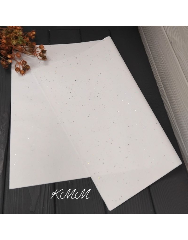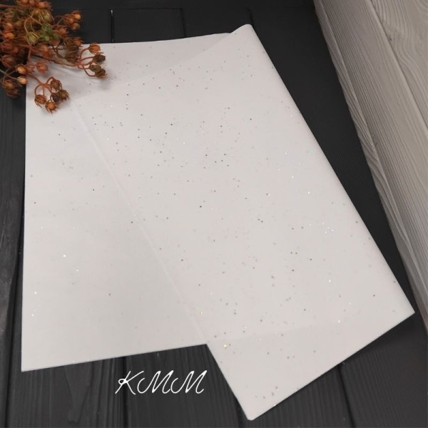 Папір тишью Біла з голографічними блискітками 50см*35см - 1шт.