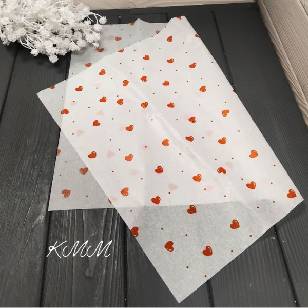 Папір тишью Серце червоне на білому 50см * 35см - 1шт.