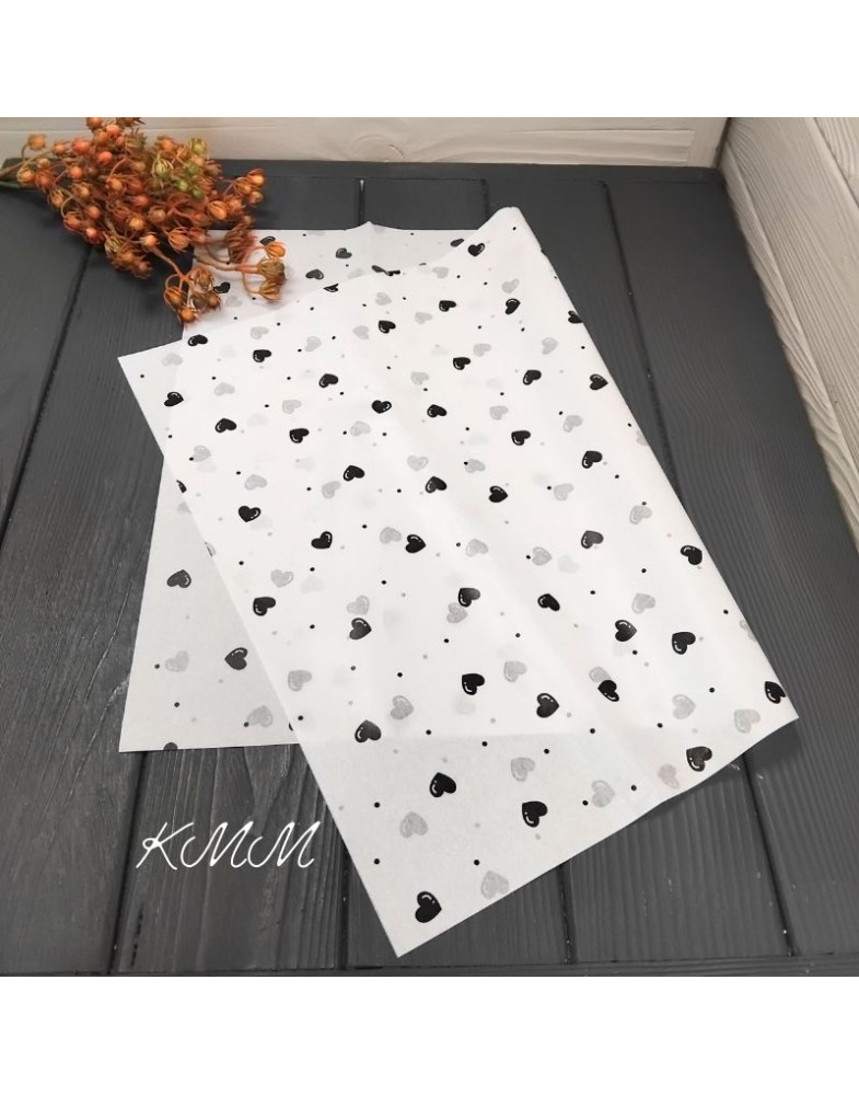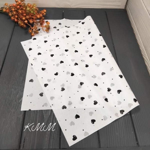Папір тишью Серце чорне на білому 50см*35см - 1шт.