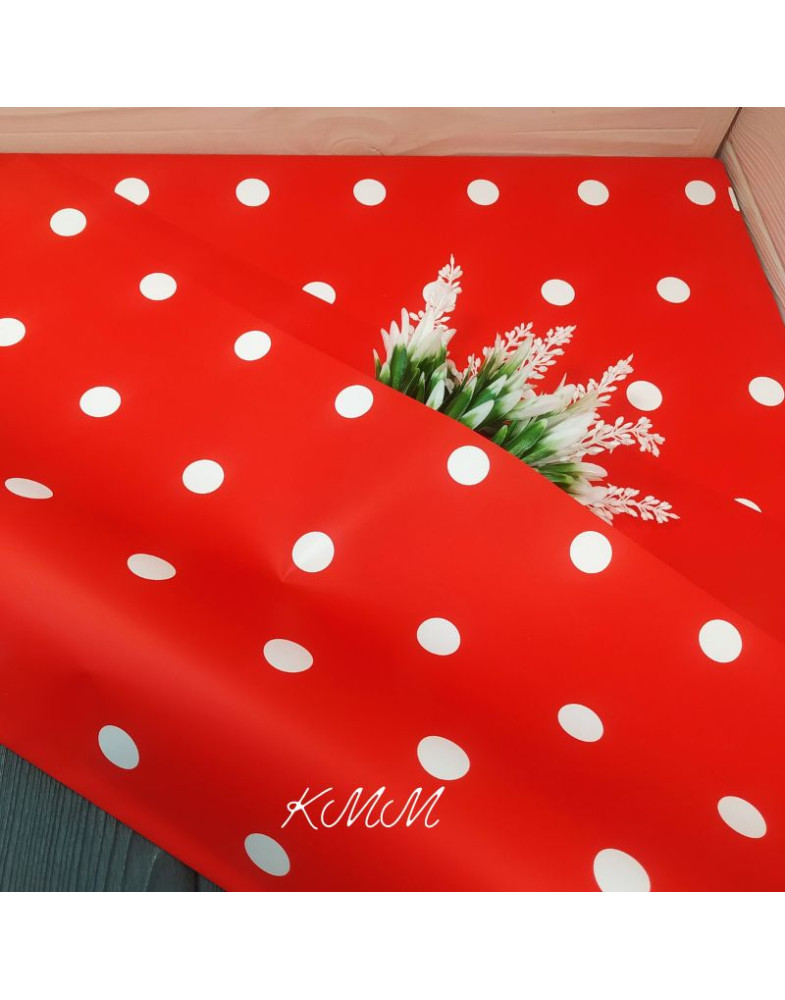 Плівка для квітів листова Червона в білий горох 600х600мм