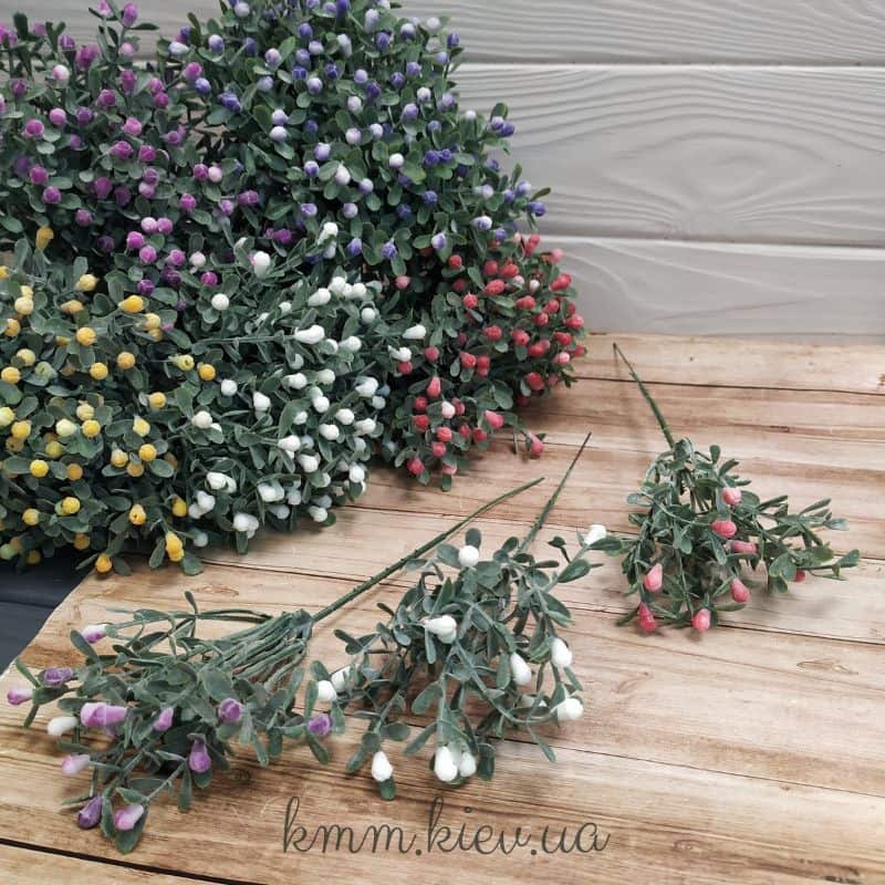 Самшит матовый с бутонами Прованс ветка декоративная цвет в ассортименте - Белый