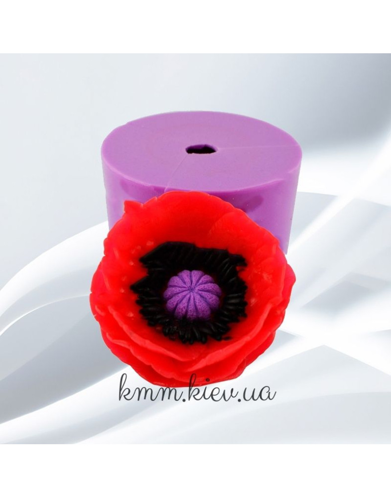Силиконовая форма люкс 3D Мак раскрытый пышный 3D