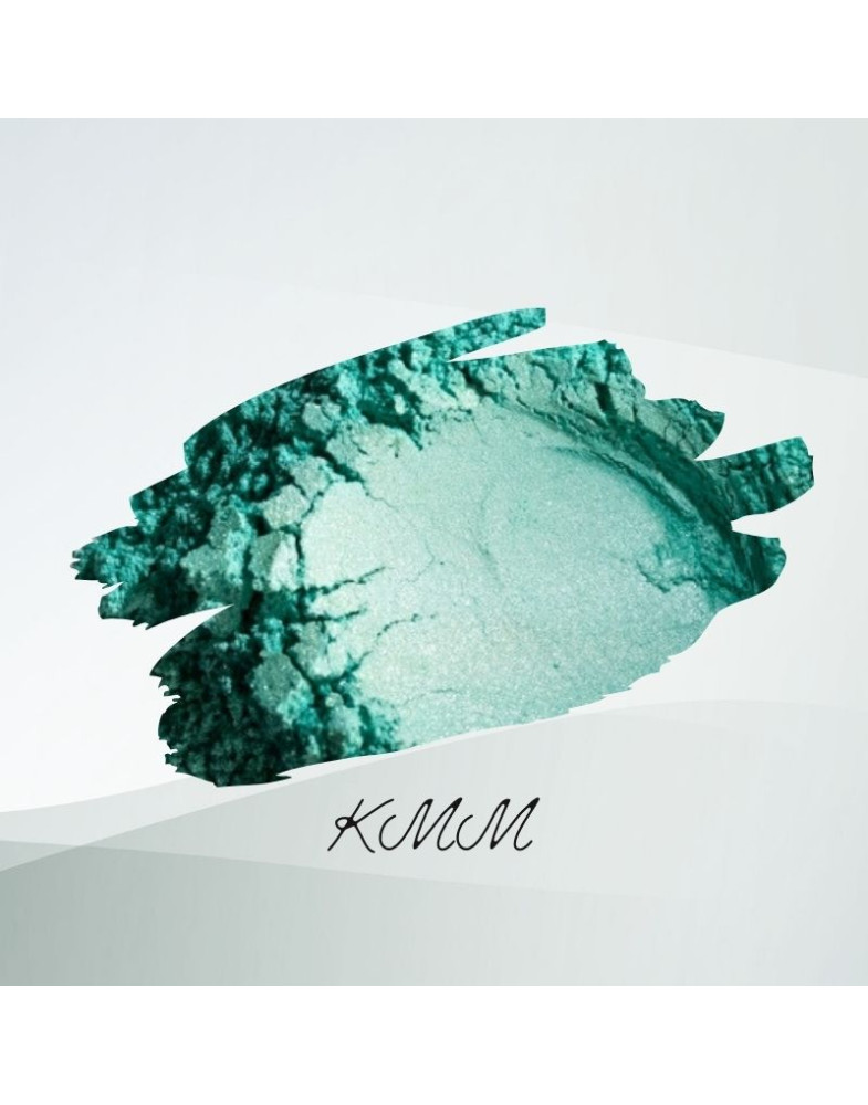 Мелкодисперсный порошок бирюзового цвета с перламутровым эффектом.