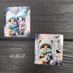 Открытка бирка Мишка и снеговик 50х45мм (5шт)
