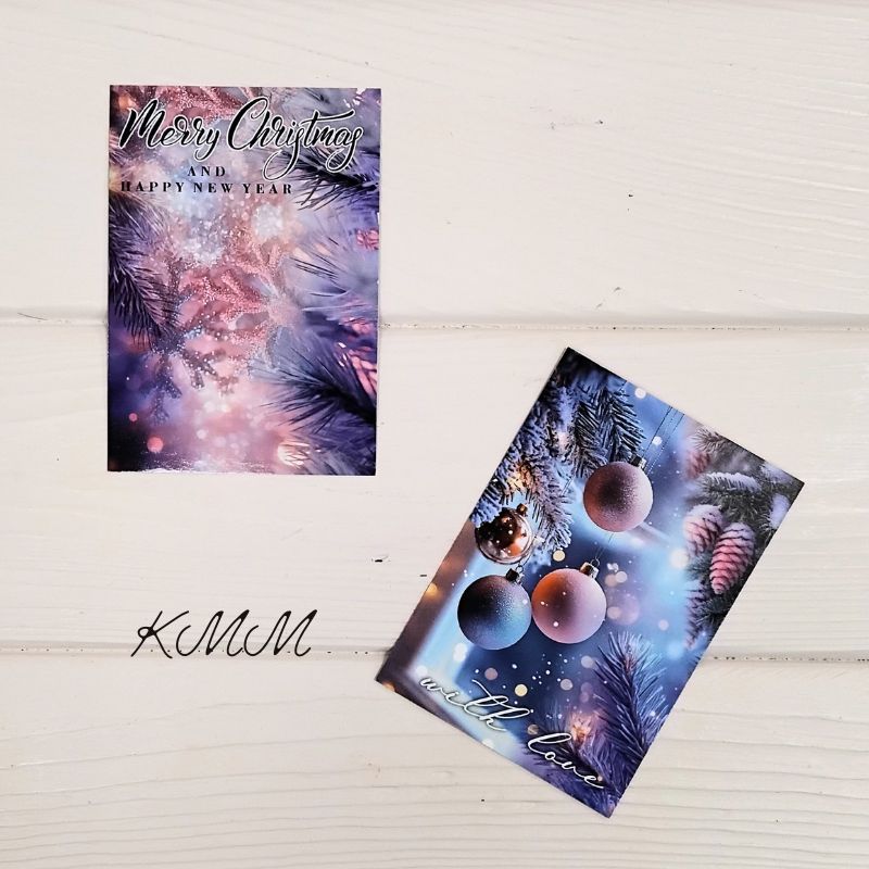 Открытка Merry Christmas and Happy New Year (сиреневая, шарики)100х70мм - 1шт