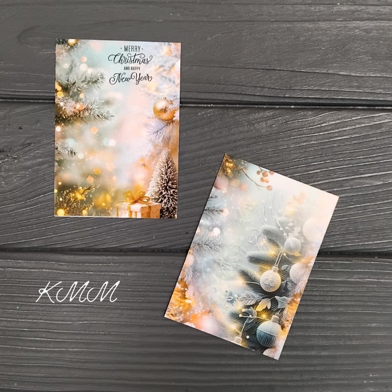 Открытка Merry Christmas and Happy New Year (нежные цвета)100х70мм - 1шт