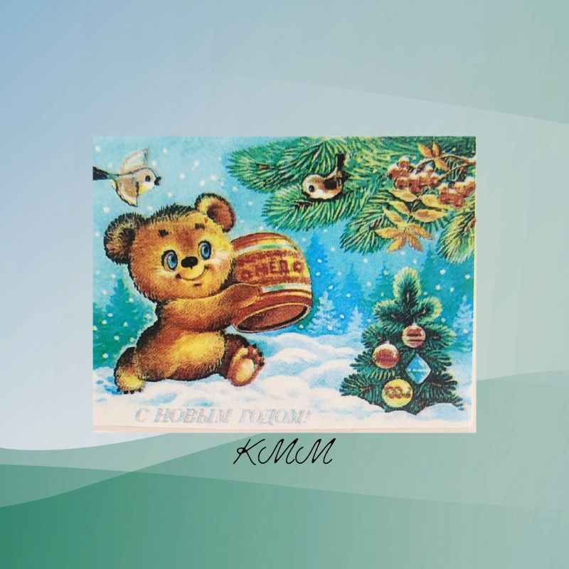 Картинка на водорастворимой бумаге Мишка с медом (С новым годом!) (1шт)