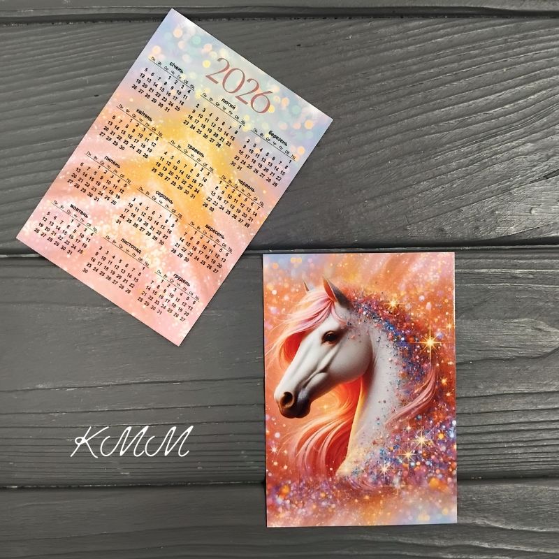 Открытка 2026 Календарь Лошадка розовая100х70мм