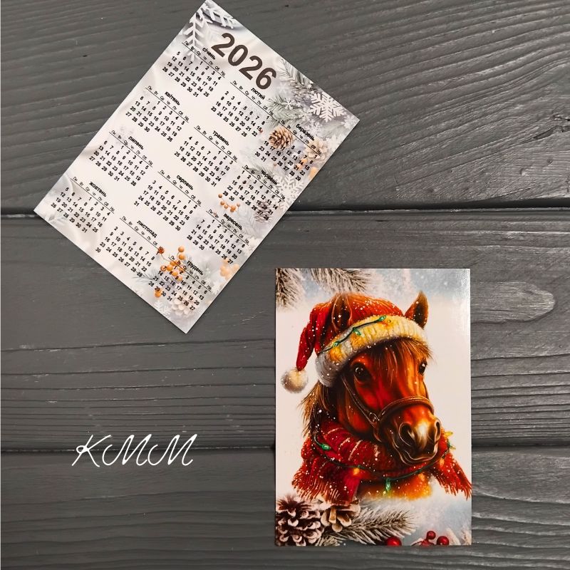 Открытка 2026 Календарь Конь в шапке 100х70мм