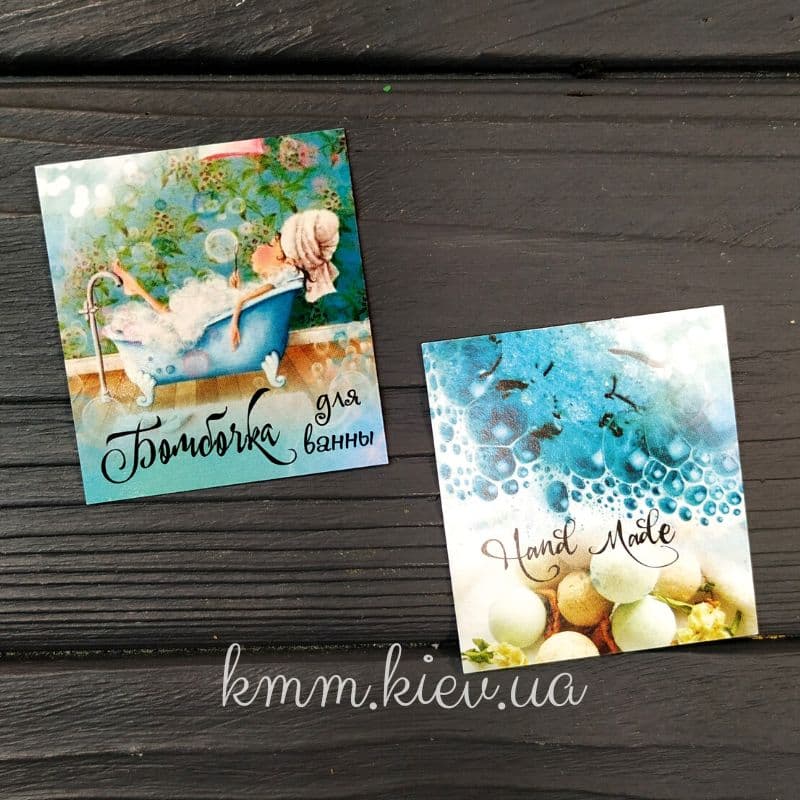 Открытка бирка Бомбочка для ванны Голубая 50х45мм (5шт)